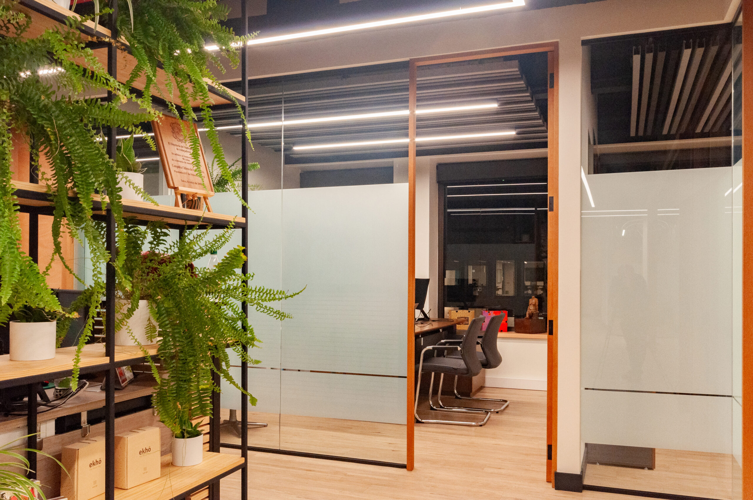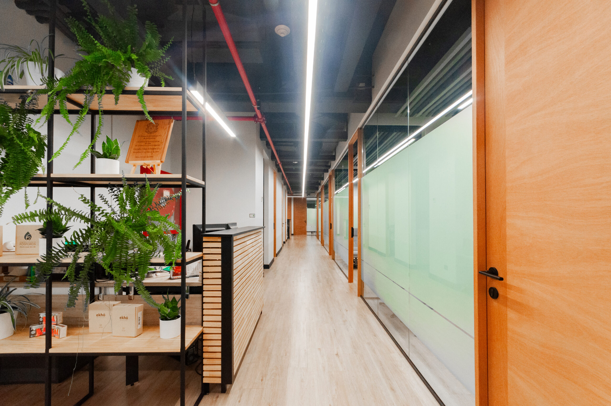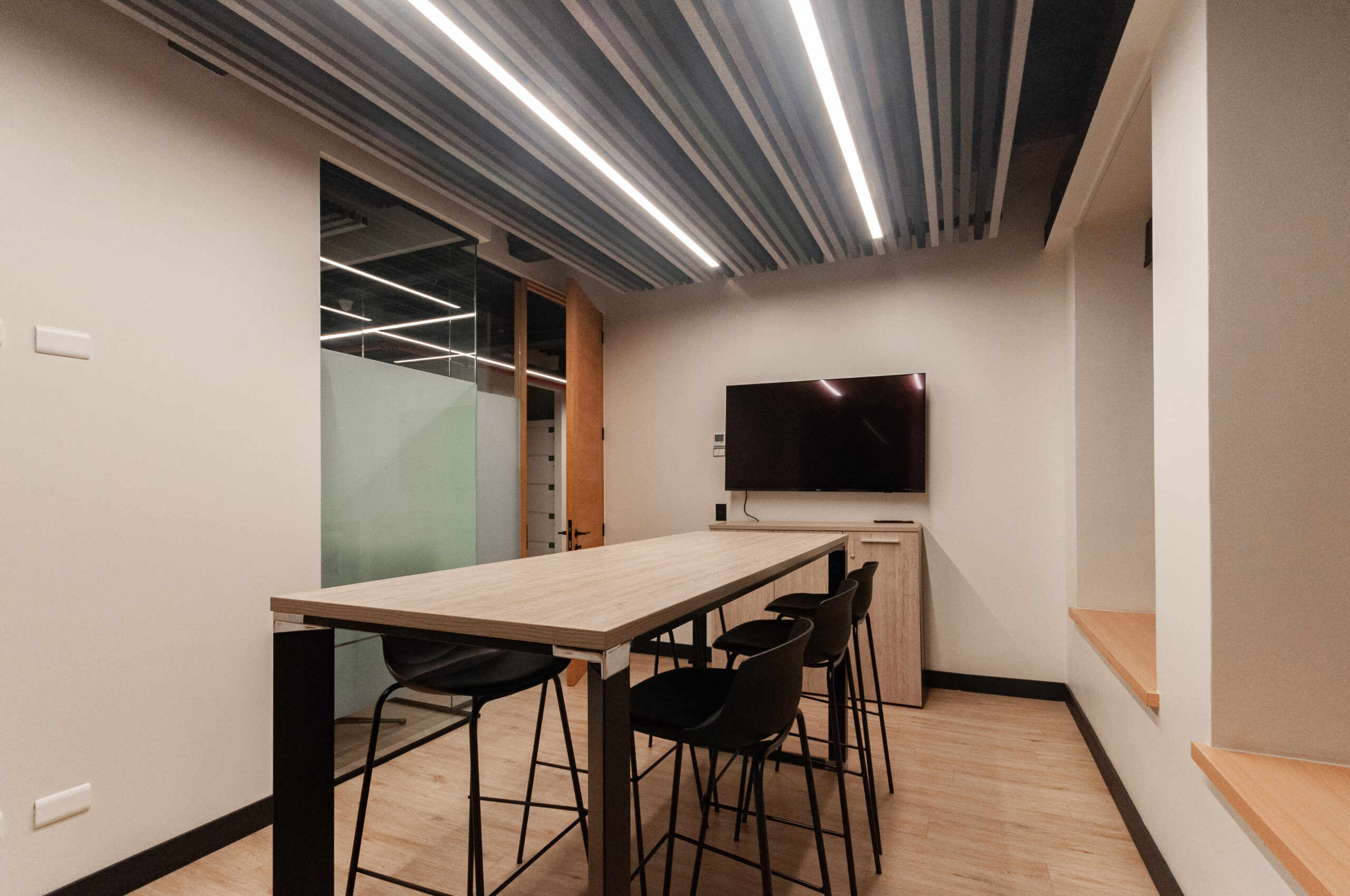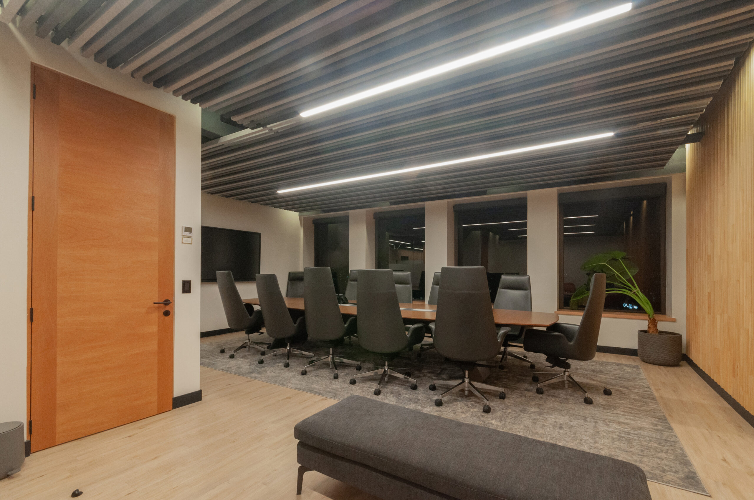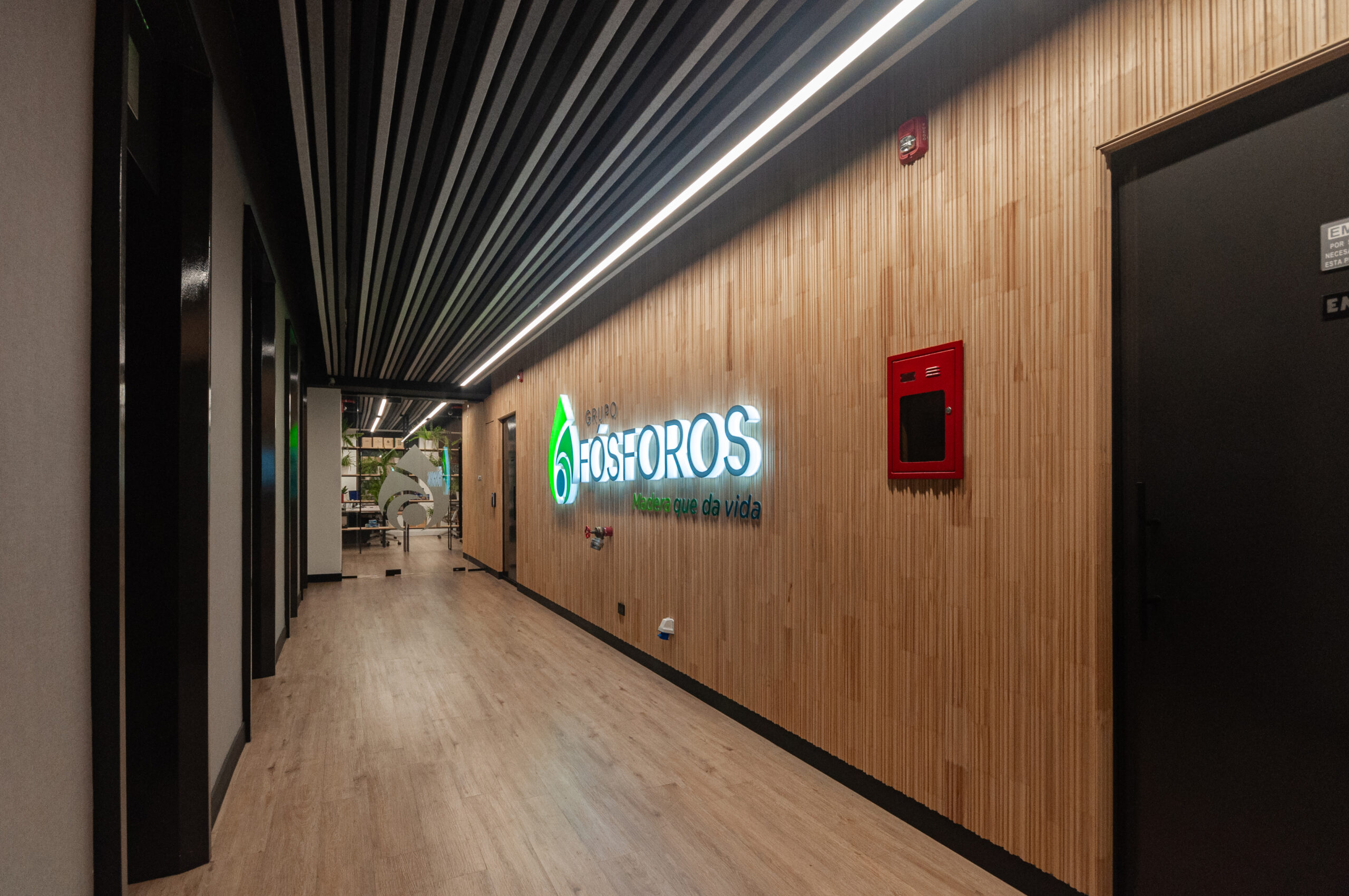 Proyecto para empresa privada que fusiona modernidad y calidez mediante el uso de la madera, incorporando tecnología avanzada para lograr eficiencia y confort.