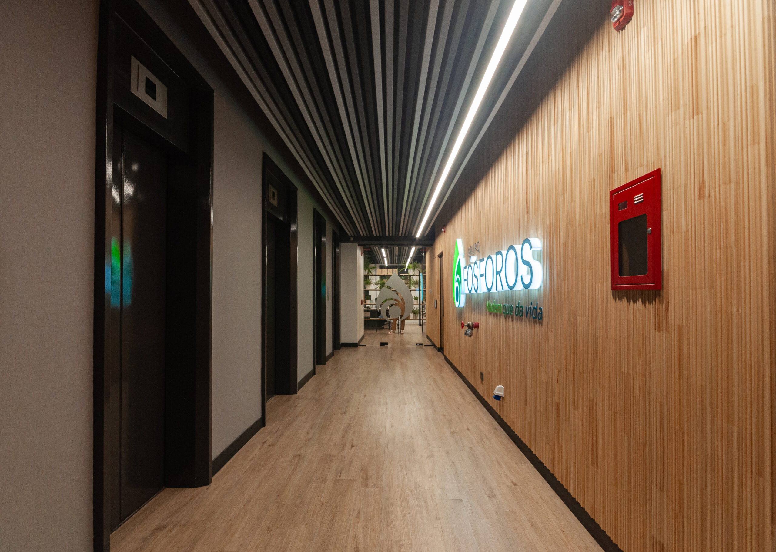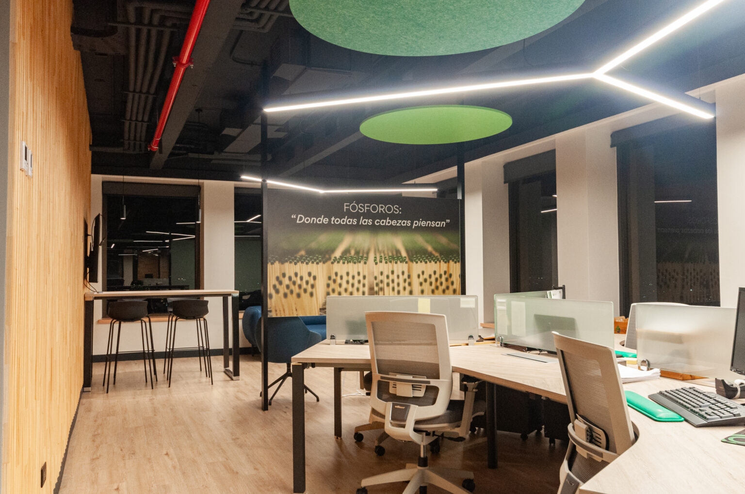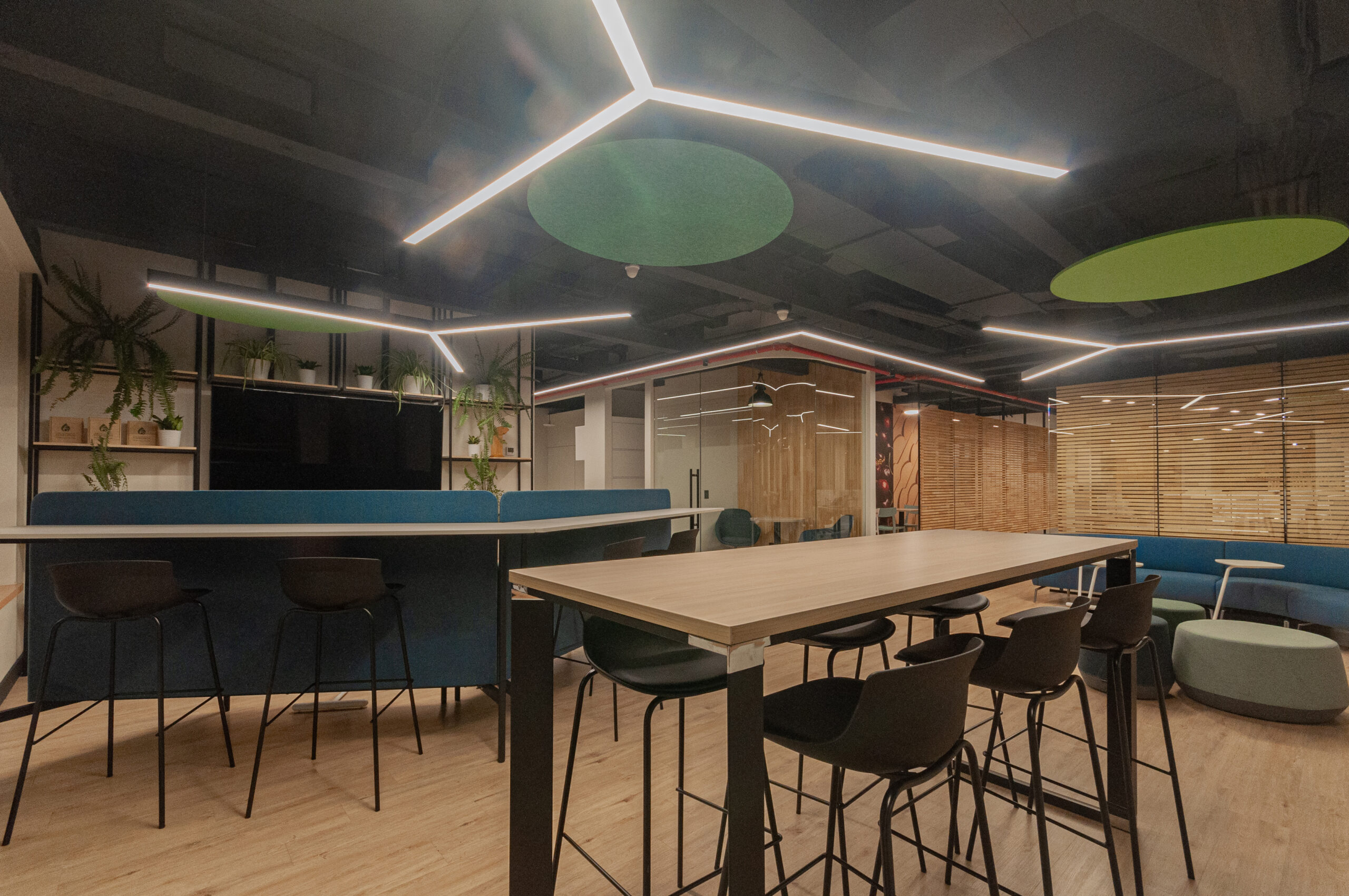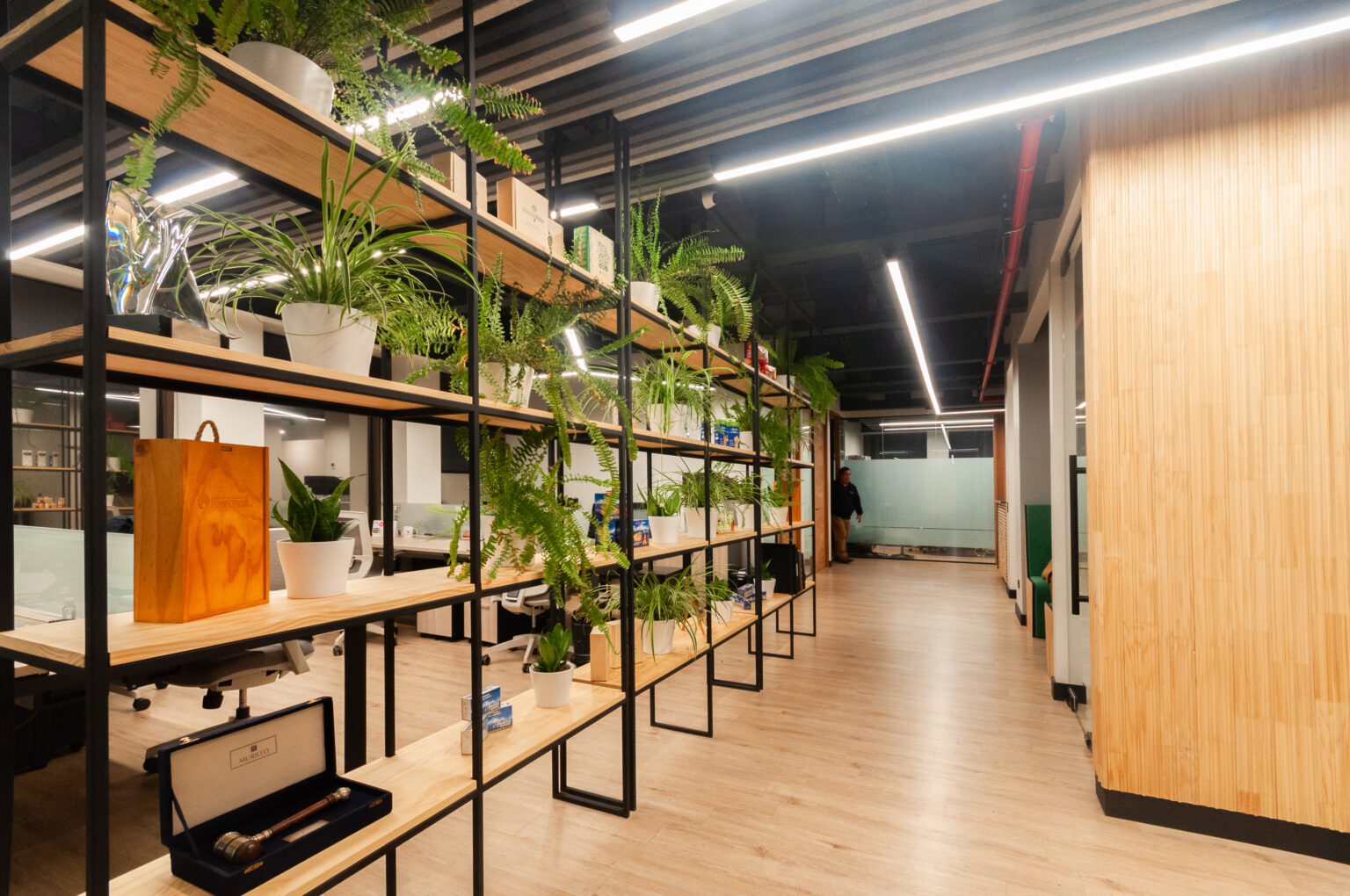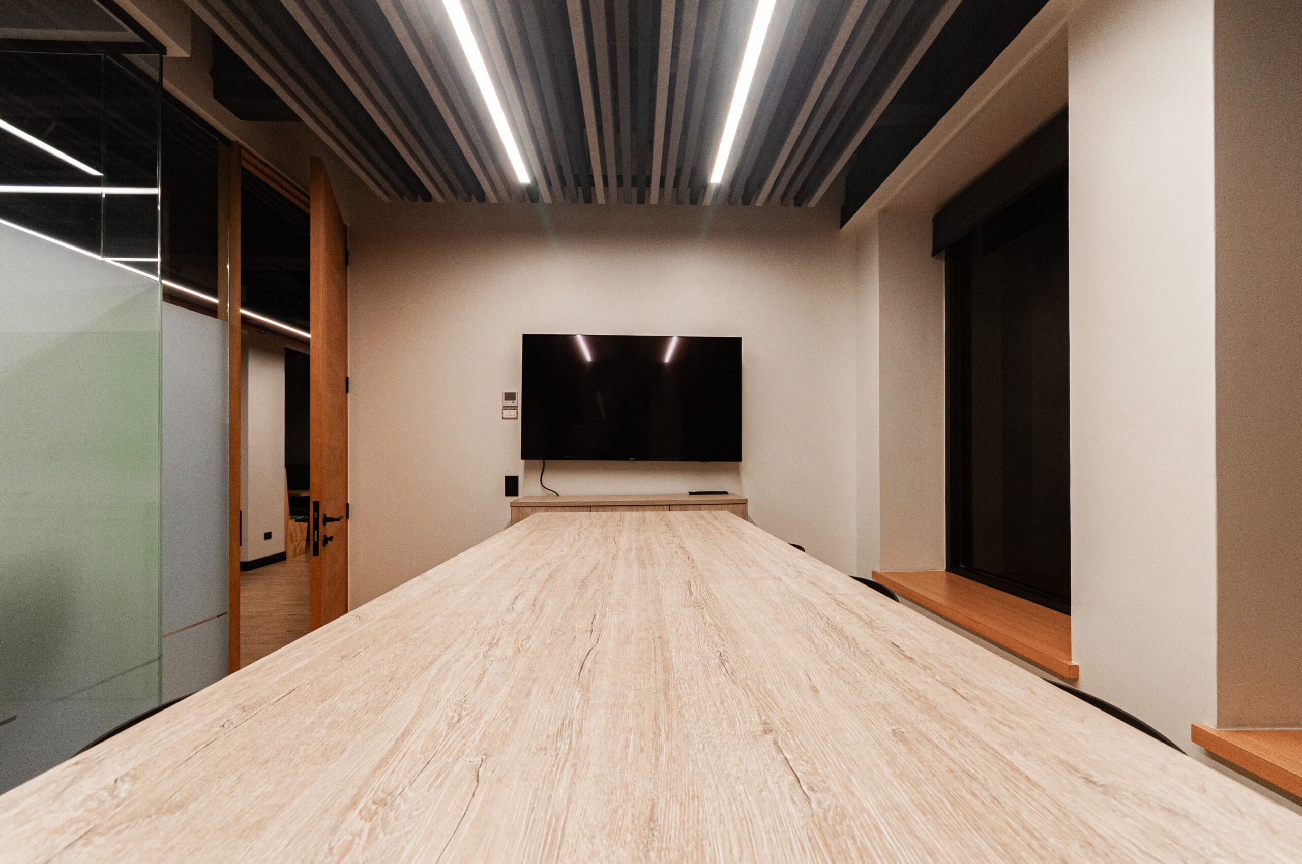Proyecto para empresa privada que fusiona modernidad y calidez mediante el uso de la madera, incorporando tecnología avanzada para lograr eficiencia y confort.