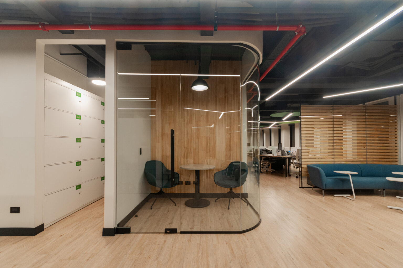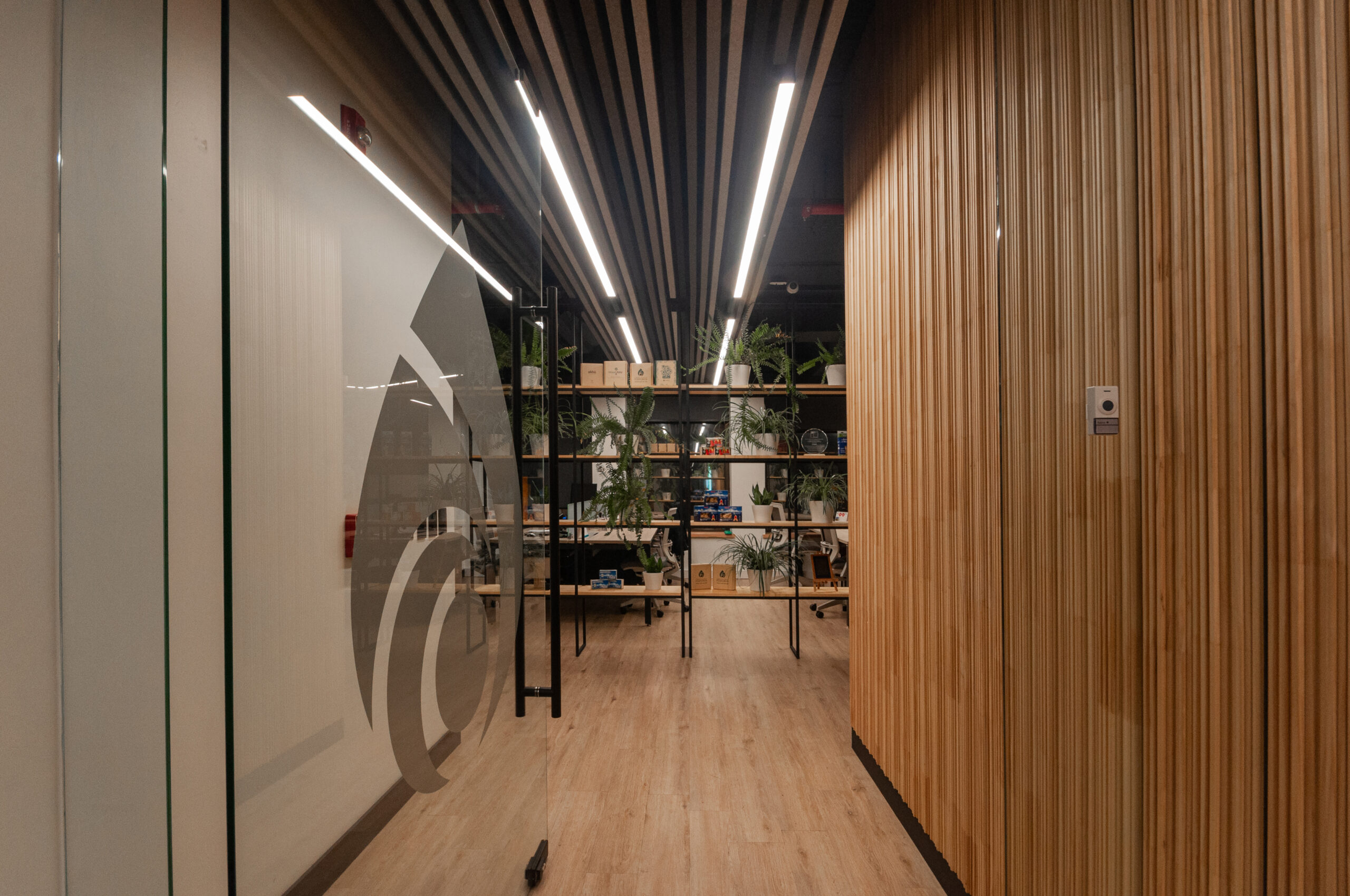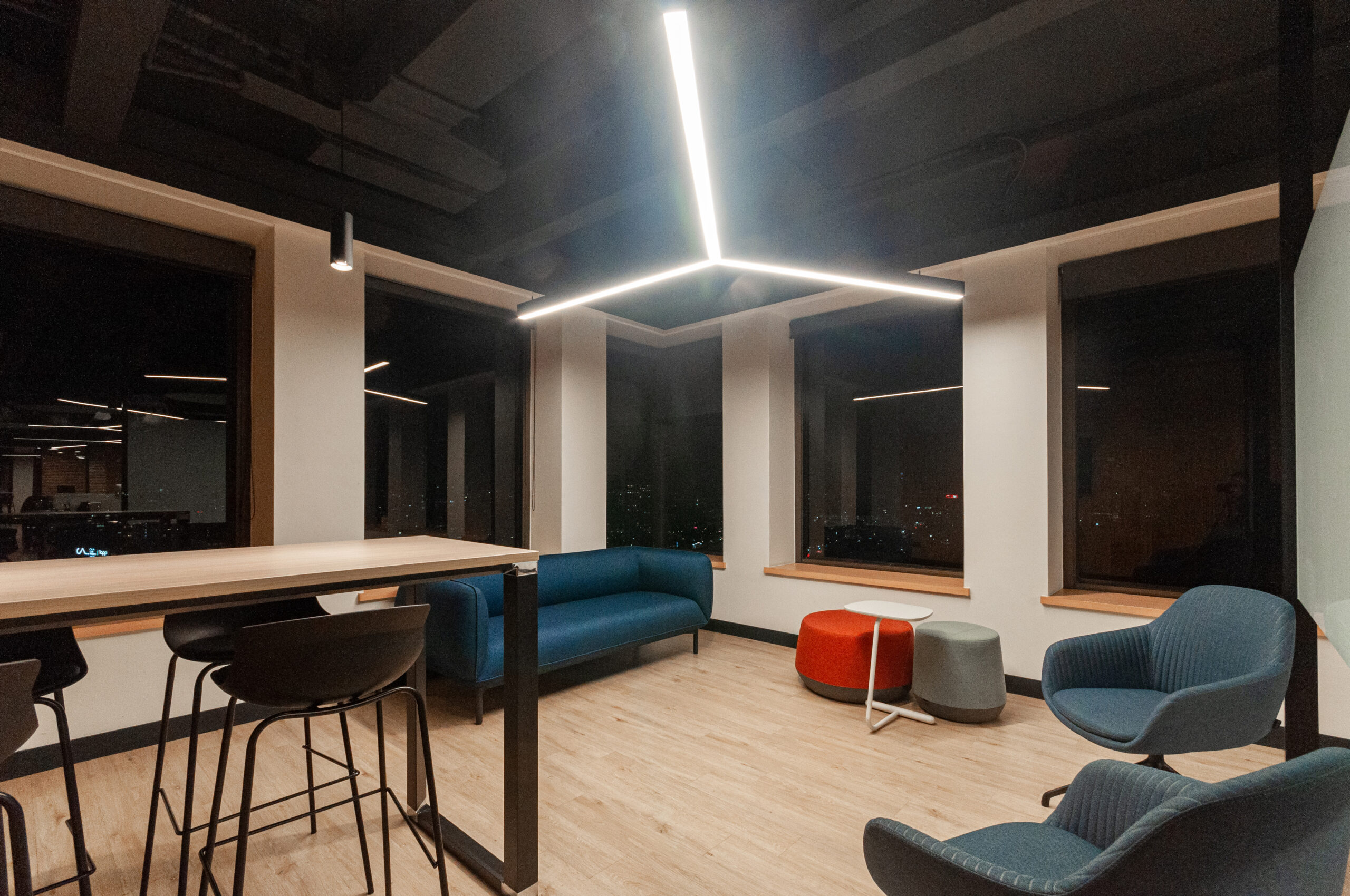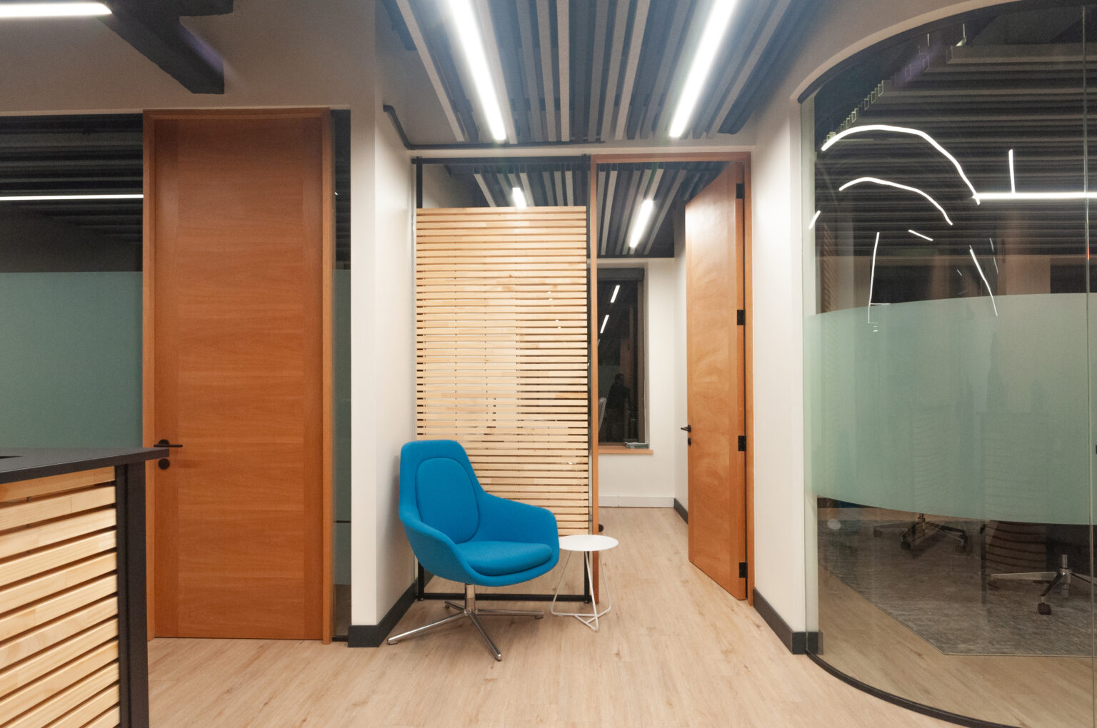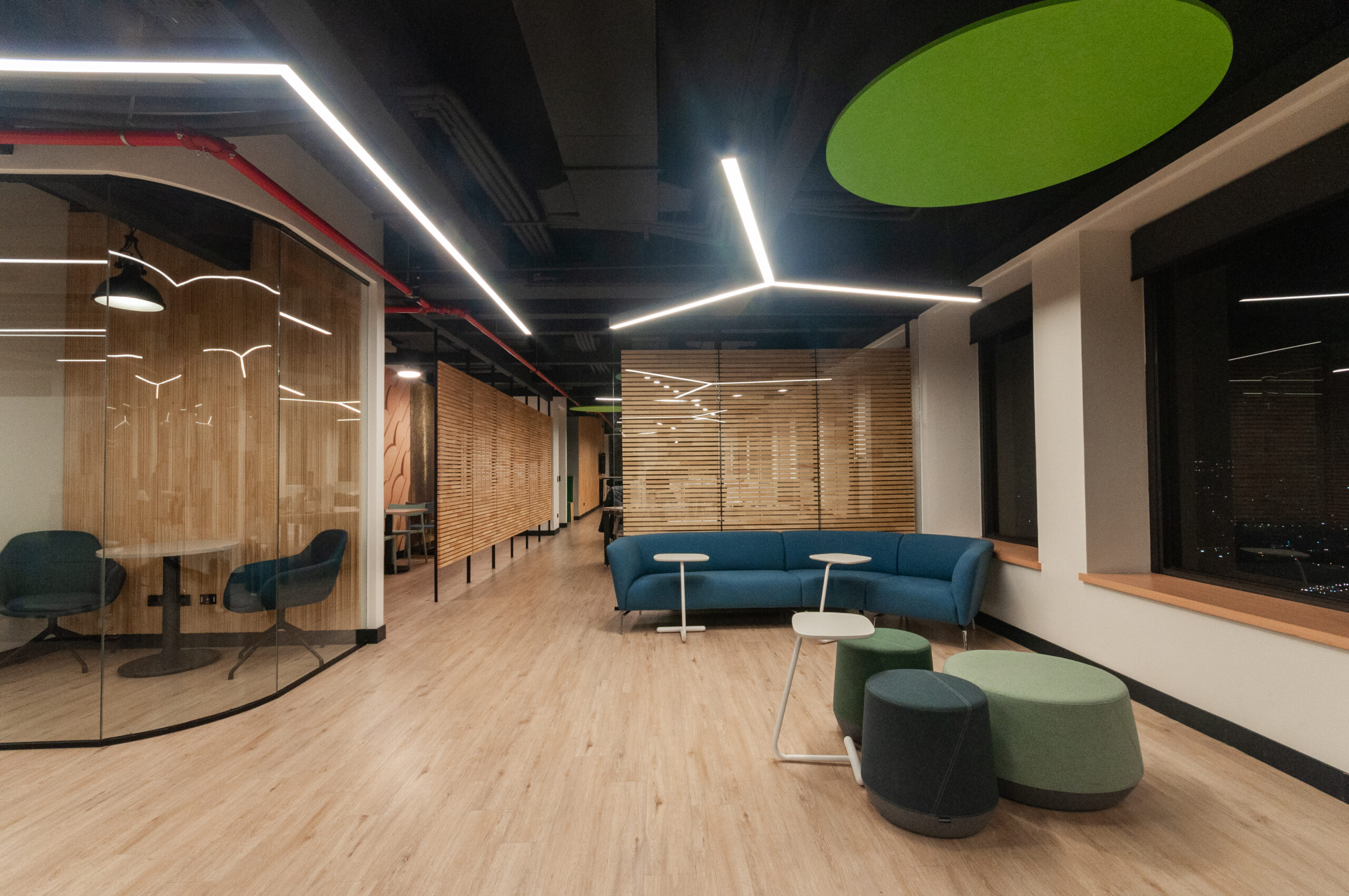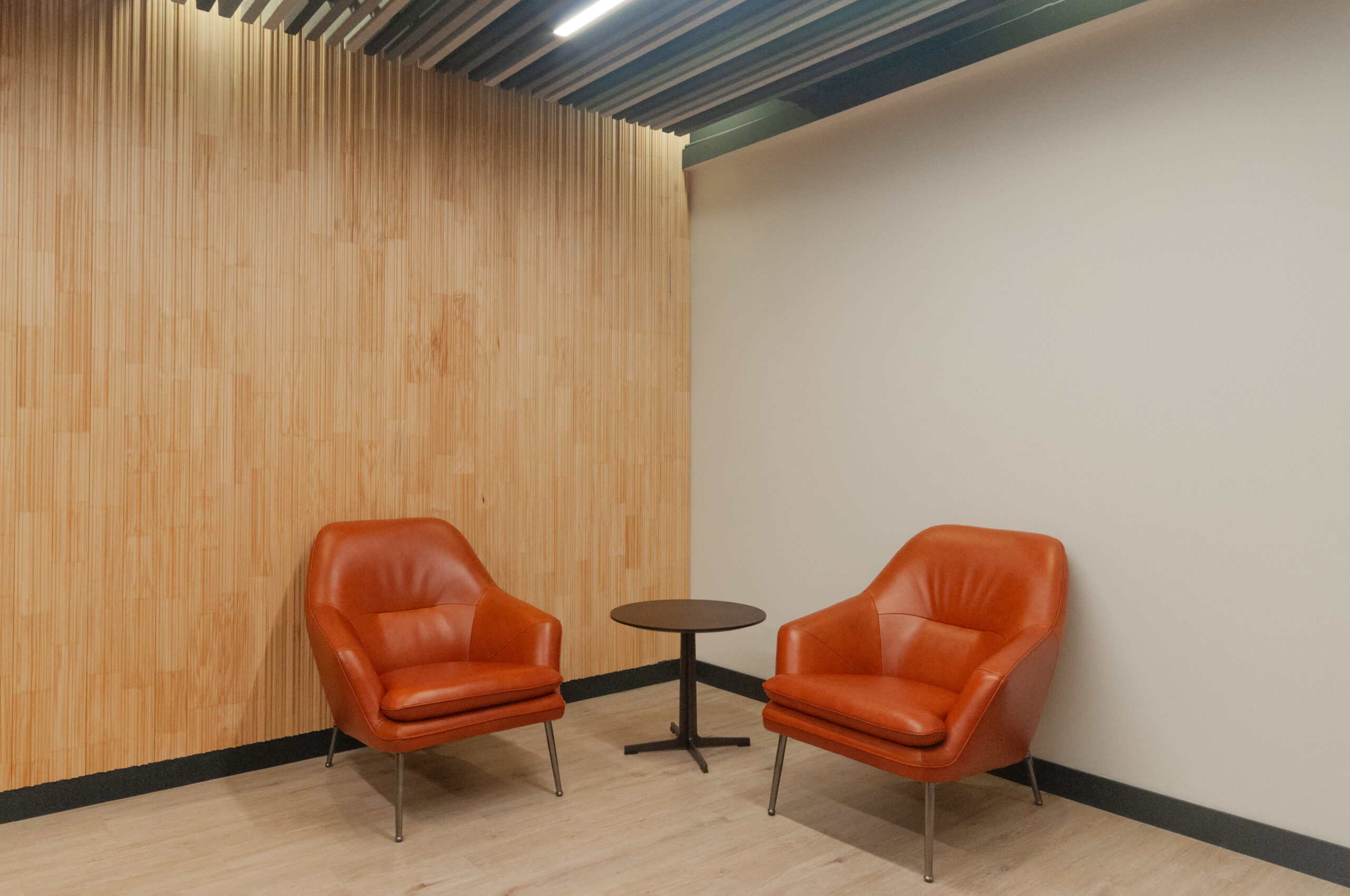 Proyecto para empresa privada que fusiona modernidad y calidez mediante el uso de la madera, incorporando tecnología avanzada para lograr eficiencia y confort.