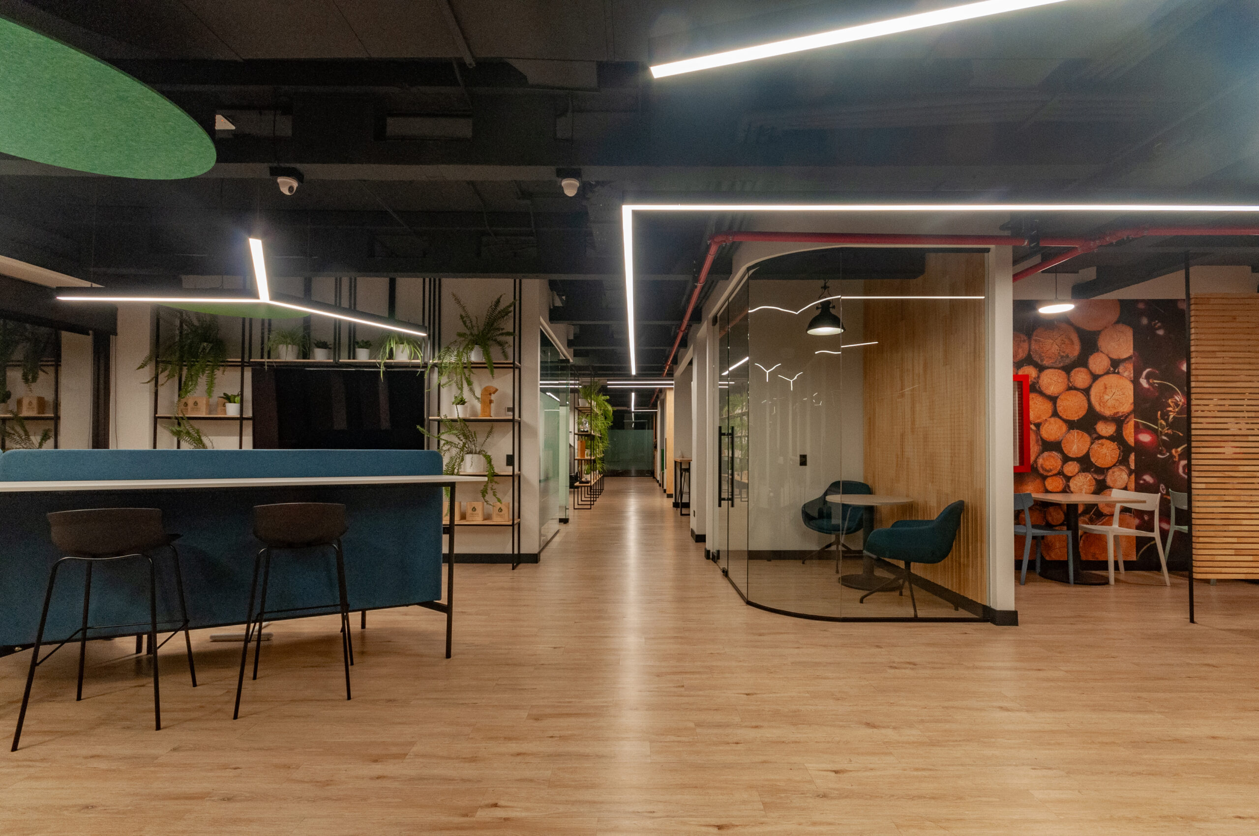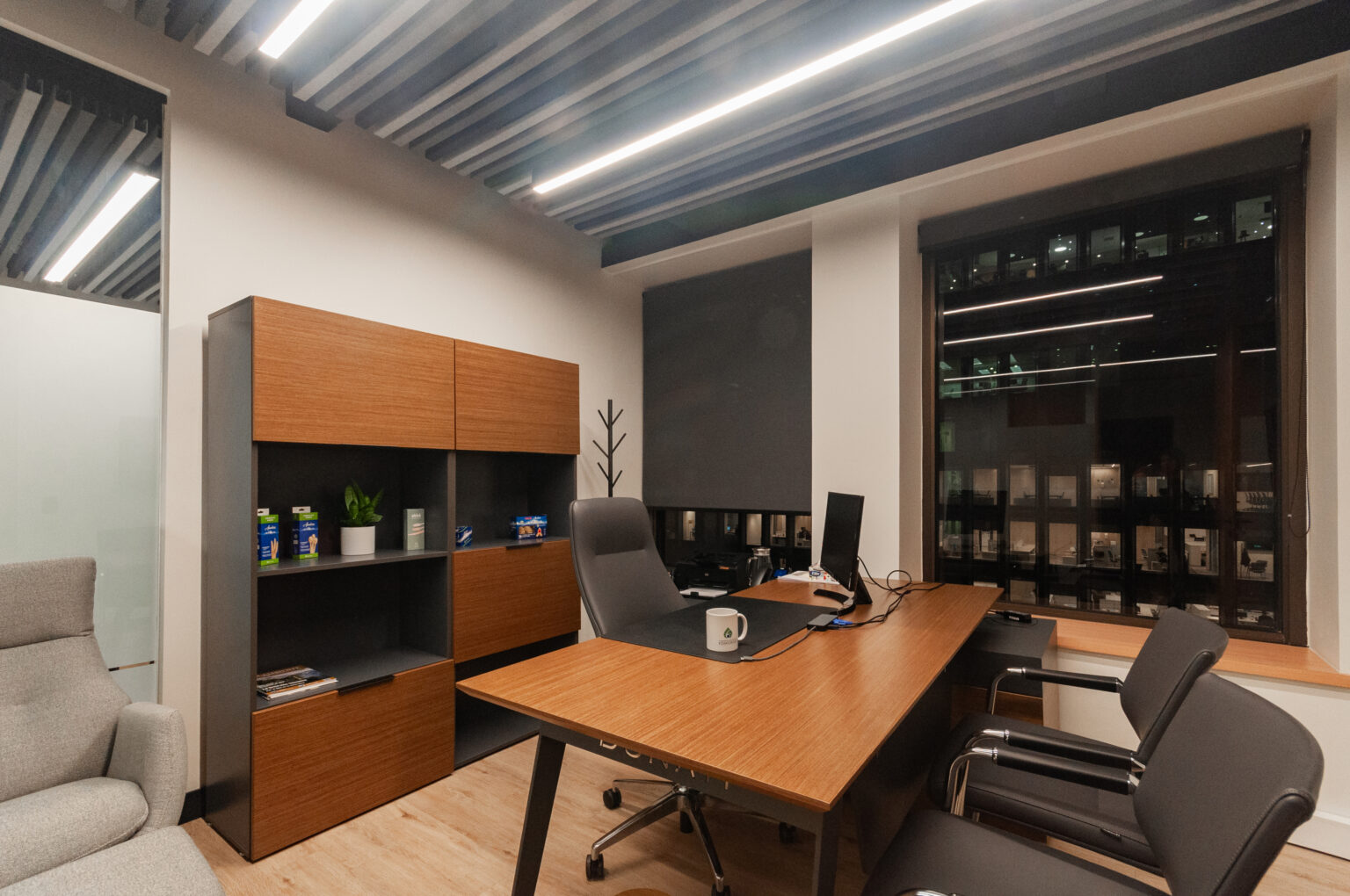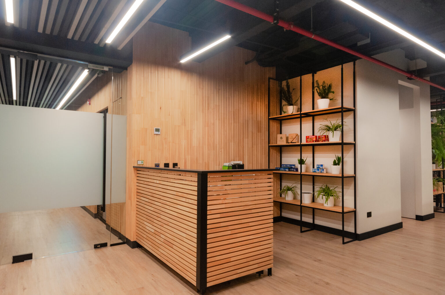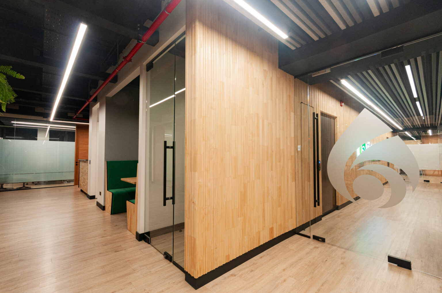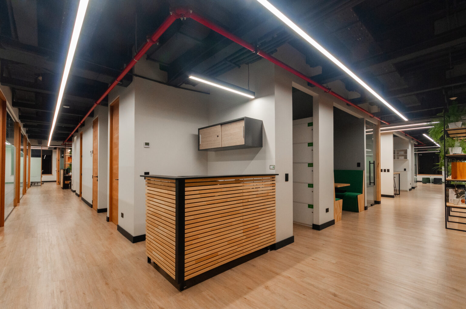 Proyecto para empresa privada que fusiona modernidad y calidez mediante el uso de la madera, incorporando tecnología avanzada para lograr eficiencia y confort.