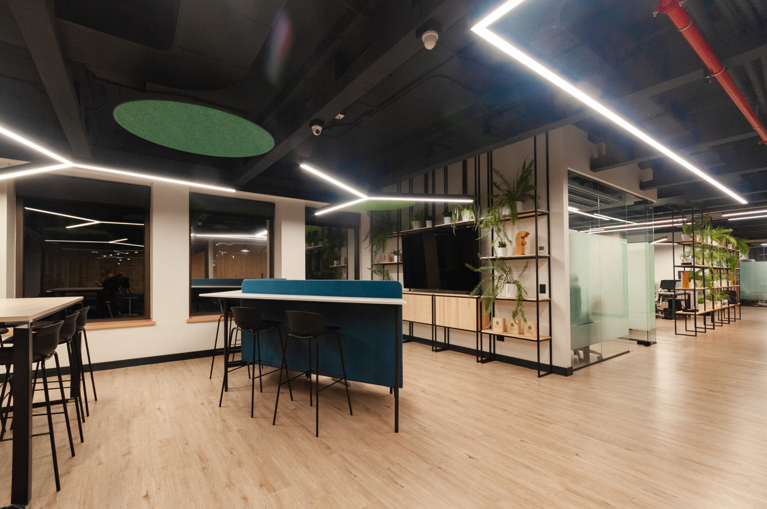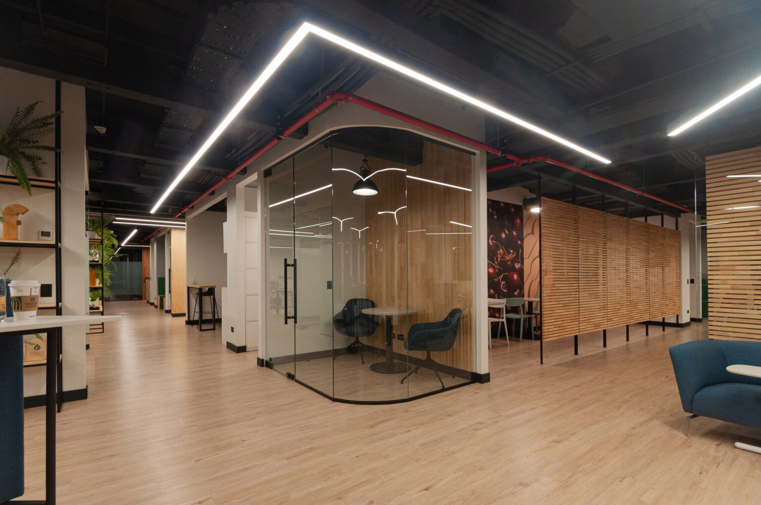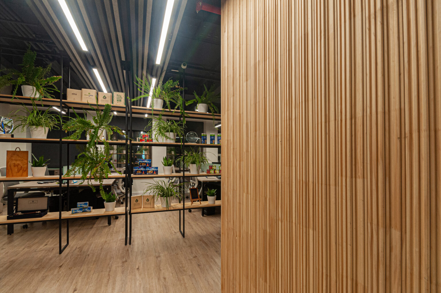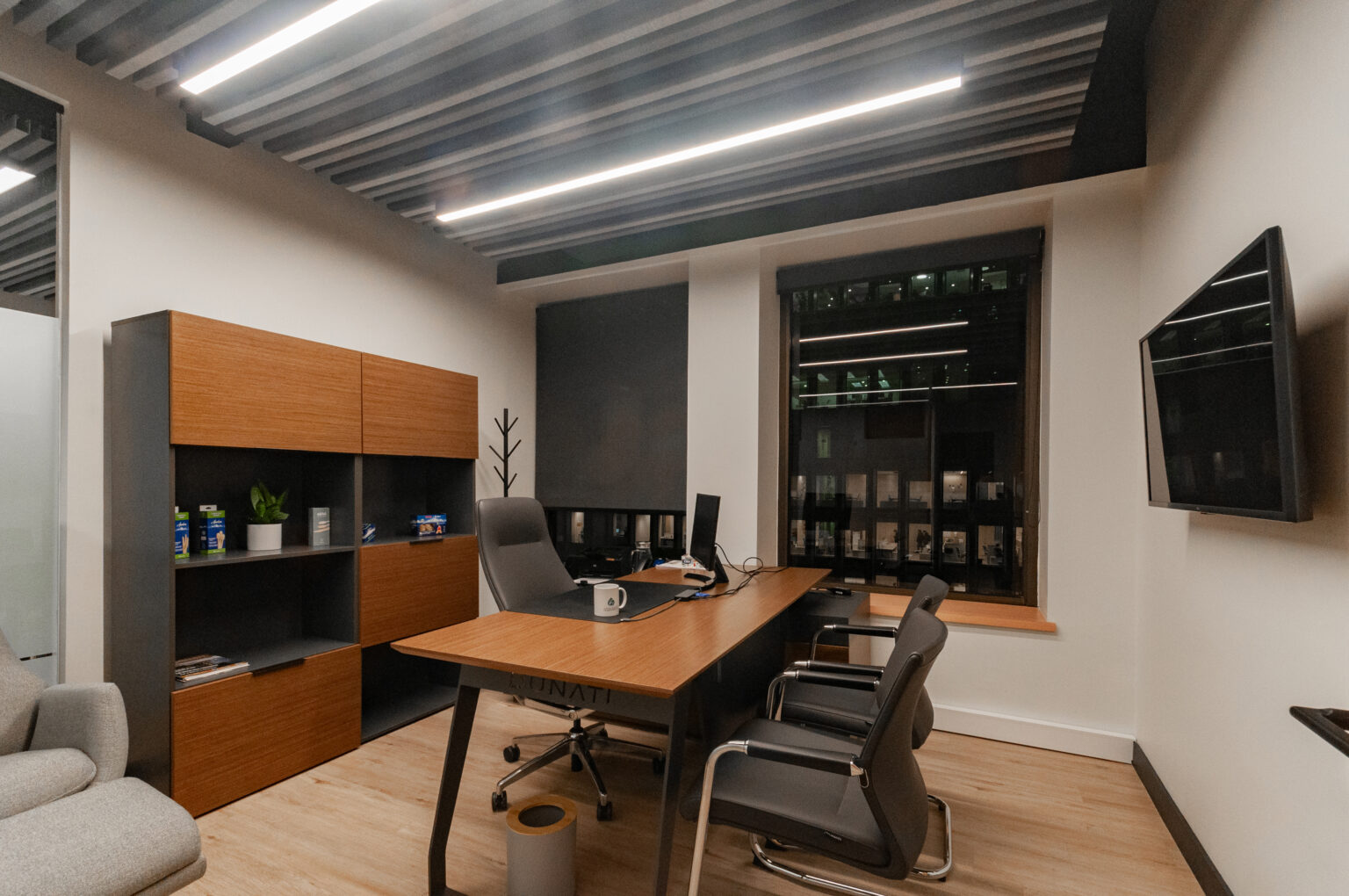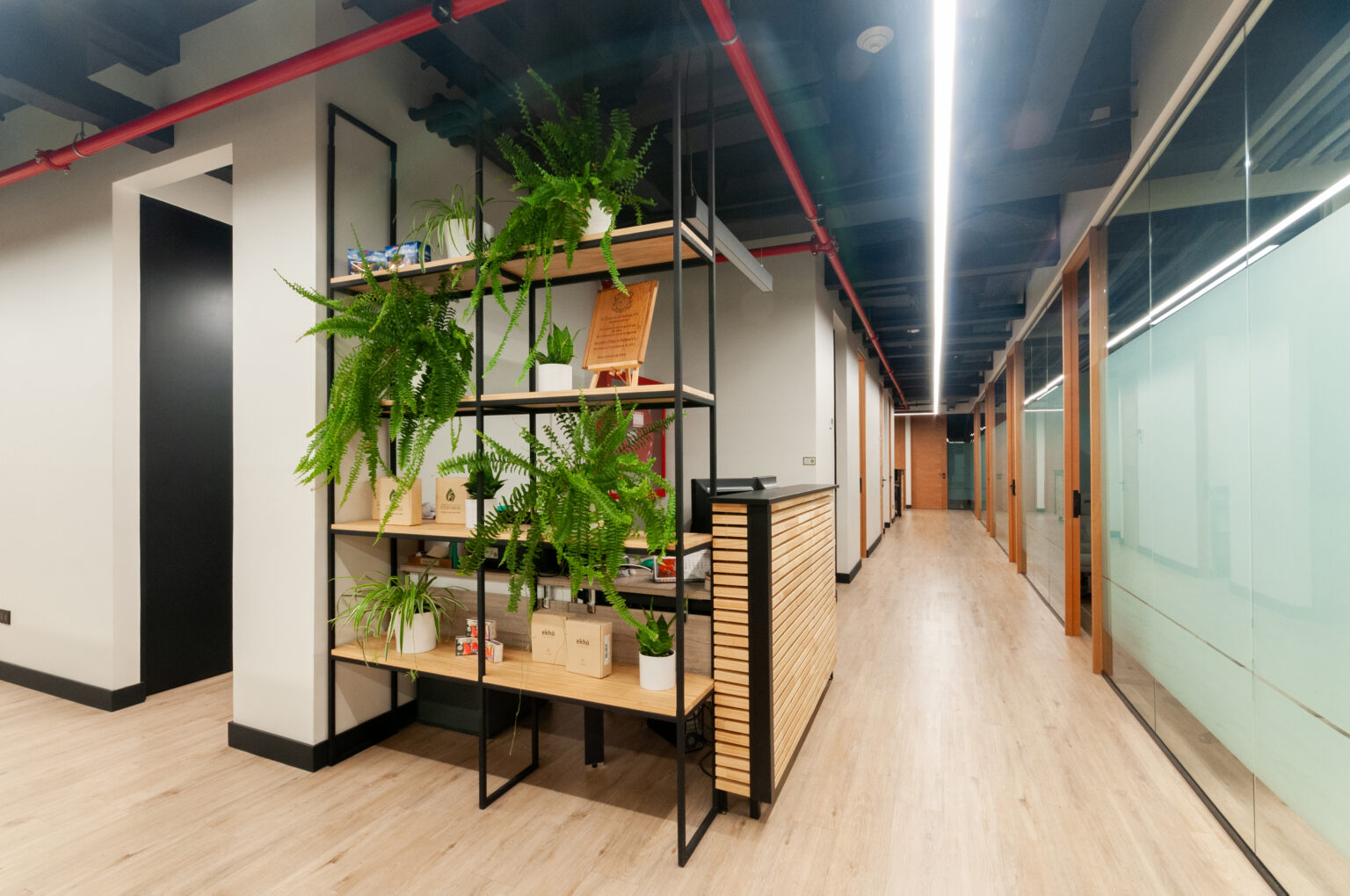 Proyecto para empresa privada que fusiona modernidad y calidez mediante el uso de la madera, incorporando tecnología avanzada para lograr eficiencia y confort.